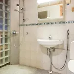 Det finns också TV. I badrummet finns även en separat toalett, ett badkar och en dusch.